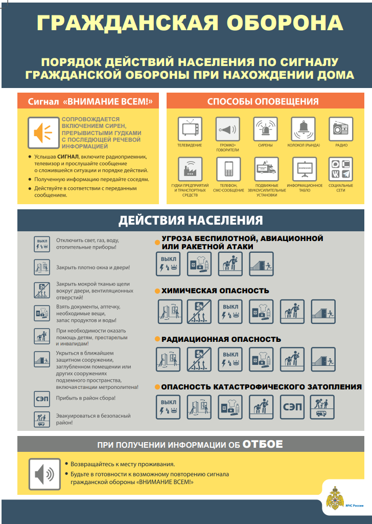 ПОРЯДОК ДЕЙСТВИЙ НАСЕЛЕНИЯ ПО СИГНАЛУ ГРАЖДАНСКОЙ ОБОРОНЫ ПРИ НАХОЖДЕНИИ ДОМА
